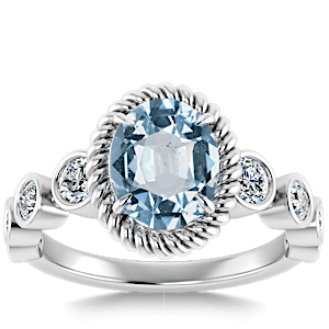 1.16ct Aquamarine set in Nature Entangled Vintage Natural Diamond Ring