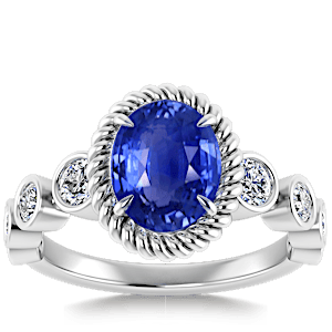 4.07ct Blue Sapphire set in Vintage Twilight Natural Diamond Ring