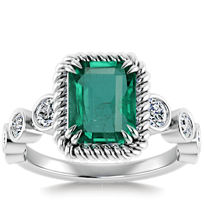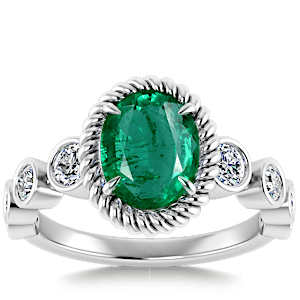 1.64ct Zambian Emerald set in Nature Entangled Vintage Natural Diamond Ring