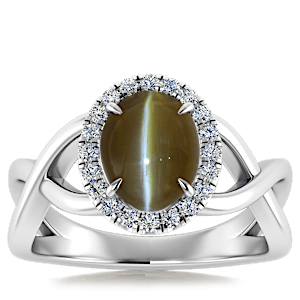 3.44ct Chrysoberyl set in Halo Vined Natural Diamond Ring