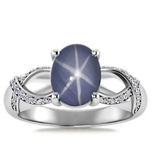 2.53ct Star Sapphire set in Vintage Twilight Natural Diamond Ring