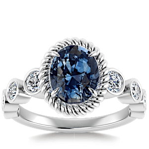 3.07ct Blue Sapphire set in Vintage Twilight Natural Diamond Ring