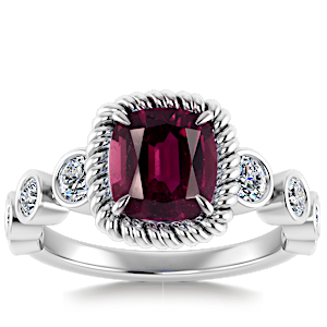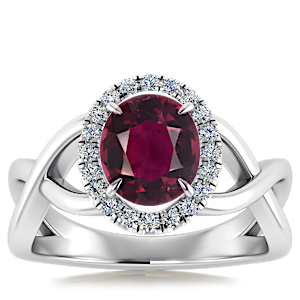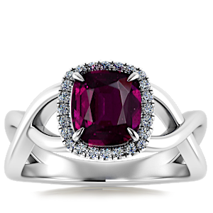 4.07ct Rhodolite set in Halo Vined Natural Diamond Ring