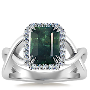 1.13ct Teal Sapphire set in Halo Vined Natural Diamond Ring