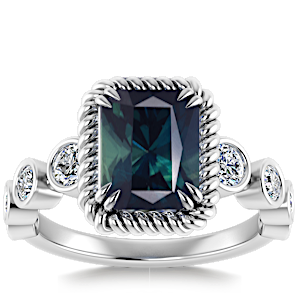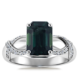 1.69ct Teal Sapphire set in Vintage Twilight Natural Diamond Ring