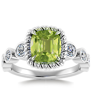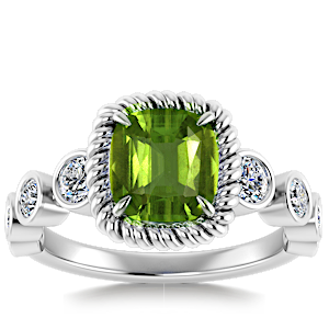 5.89ct Peridot set in Nature Entangled Vintage Natural Diamond Ring