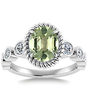 4.10ct Green Tourmaline set in Vintage Twilight Natural Diamond Ring