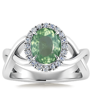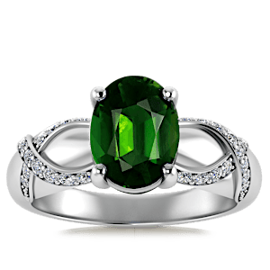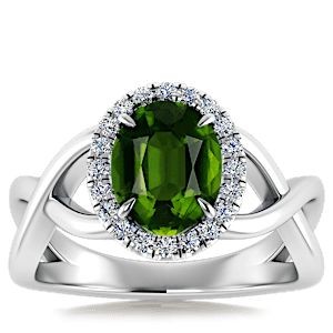 1.52ct Chrome Tourmaline set in Halo Vined Natural Diamond Ring
