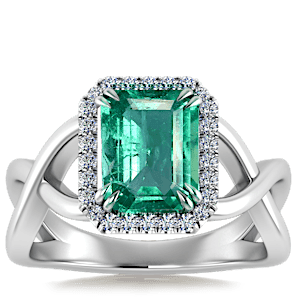 1.60ct Zambian Emerald set in Halo Vined Natural Diamond Ring