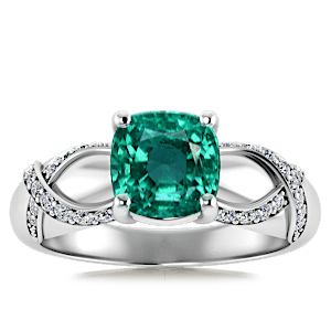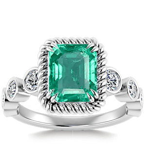 1.17ct Zambian Emerald set in Vintage Twilight Natural Diamond Ring