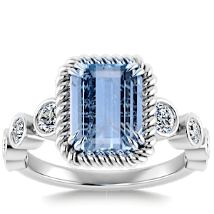 1.78ct Aquamarine set in Vintage Twilight Natural Diamond Ring
