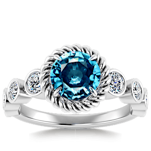 1.08ct Cuprian Tourmaline set in Vintage Twilight Natural Diamond Ring