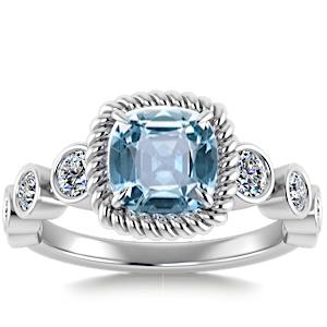 1.67ct Aquamarine set in Vintage Twilight Natural Diamond Ring
