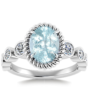 3.14ct Aquamarine set in Nature Entangled Vintage Natural Diamond Ring