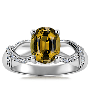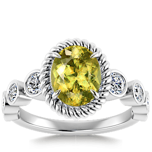 4.76ct Yellow Tourmaline set in Nature Entangled Vintage Natural Diamond Ring