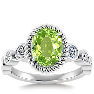 6.01ct Green Tourmaline set in Nature Entangled Vintage Natural Diamond Ring