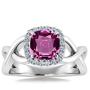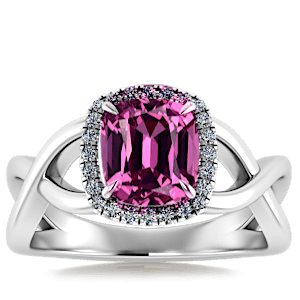 3.43ct Rubellite Tourmaline set in Halo Vined Natural Diamond Ring
