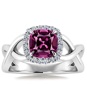 2.21ct Rhodolite set in Halo Vined Natural Diamond Ring