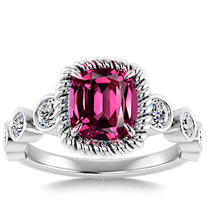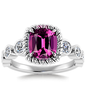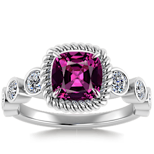 2.72ct Rhodolite set in Vintage Twilight Natural Diamond Ring