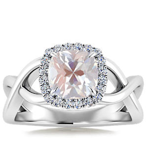 2.67ct Rainbow Moonstone set in Halo Vined Natural Diamond Ring
