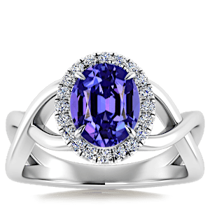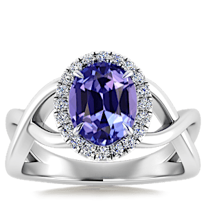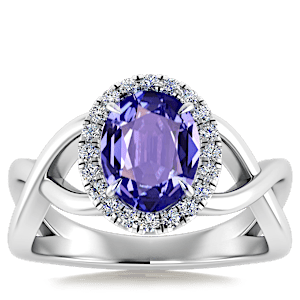 1.47ct Tanzanite set in Halo Vined Natural Diamond Ring