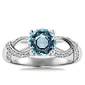 1.76ct Aquamarine set in Nature Entangled Vintage Natural Diamond Ring