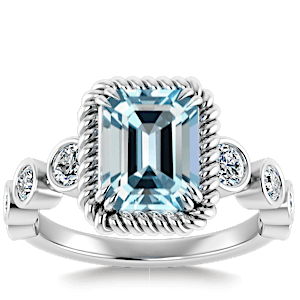 1.98ct Aquamarine set in Vintage Twilight Natural Diamond Ring