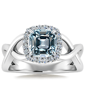 2.90ct Aquamarine set in Halo Vined Natural Diamond Ring