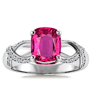 1.17ct Rubellite Tourmaline set in Vintage Twilight Natural Diamond Ring