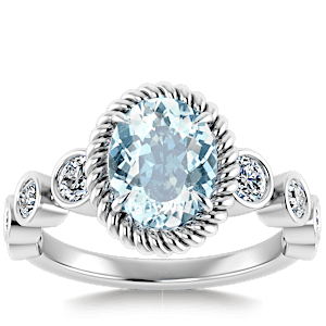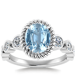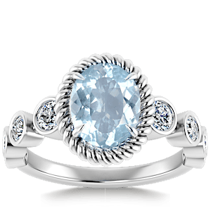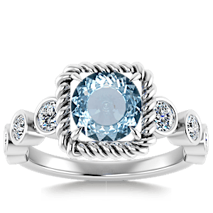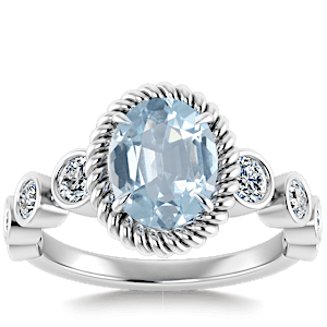 2.36ct Aquamarine set in Nature Entangled Vintage Natural Diamond Ring
