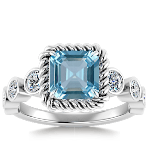 3.99ct Aquamarine set in Vintage Twilight Natural Diamond Ring