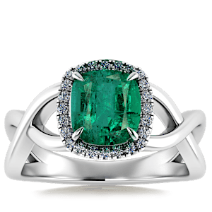 2.75ct Zambian Emerald set in Halo Vined Natural Diamond Ring