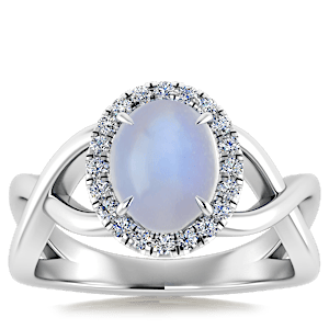 4.09ct Blue Moonstone set in Halo Vined Natural Diamond Ring
