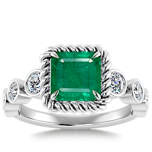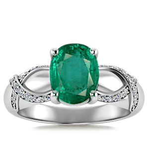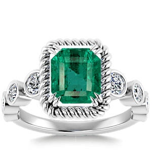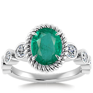 2.50ct Zambian Emerald set in Vintage Twilight Natural Diamond Ring
