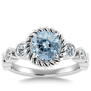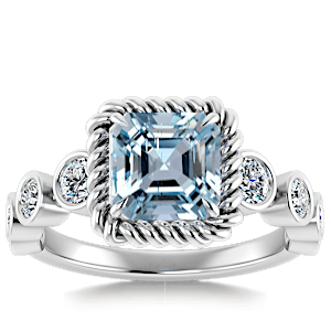 2.74ct Aquamarine set in Vintage Twilight Natural Diamond Ring