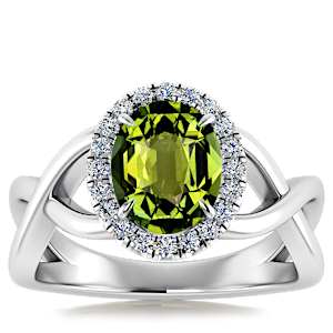 3.08ct Green Tourmaline set in Halo Vined Natural Diamond Ring