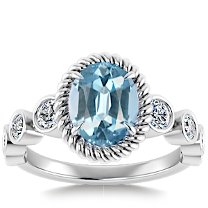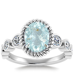 1.69ct Aquamarine set in Vintage Twilight Natural Diamond Ring