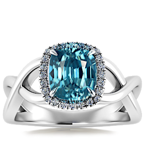 1.00ct Aquamarine set in Halo Vined Natural Diamond Ring