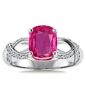 3.04ct Mozambique Ruby set in Halo Vined Natural Diamond Ring