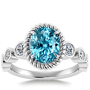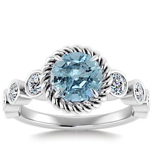1.16ct Aquamarine set in Nature Entangled Vintage Natural Diamond Ring