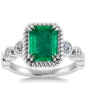 1.64ct Zambian Emerald set in Vintage Twilight Natural Diamond Ring