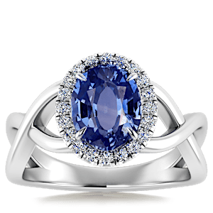 2.30ct Blue Sapphire set in Halo Vined Natural Diamond Ring