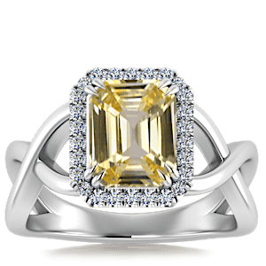 3.06ct Yellow Sapphire set in Halo Vined Natural Diamond Ring