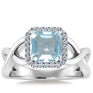 1.53ct Aquamarine set in Halo Vined Natural Diamond Ring