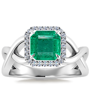 1.92ct Zambian Emerald set in Halo Vined Natural Diamond Ring