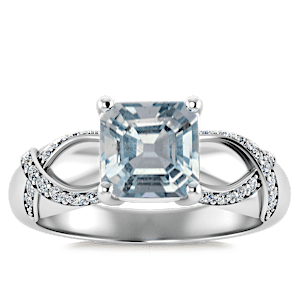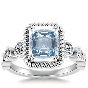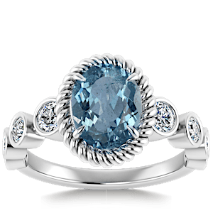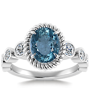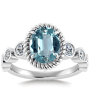 1.08ct Aquamarine set in Vintage Twilight Natural Diamond Ring