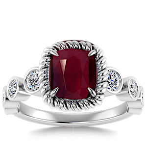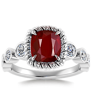 1.54ct Mozambique Ruby set in Vintage Twilight Natural Diamond Ring