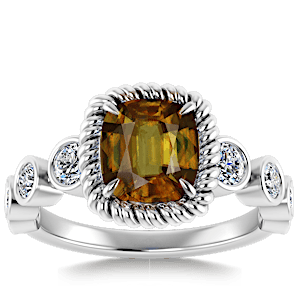 5.31ct Sphene set in Vintage Twilight Natural Diamond Ring