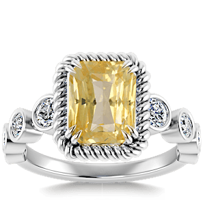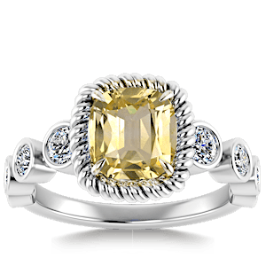 5.58ct Yellow Sapphire set in Vintage Twilight Natural Diamond Ring