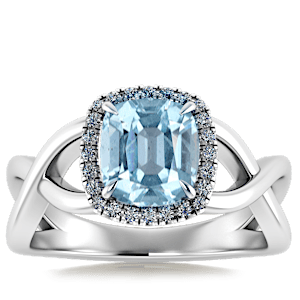 4.43ct Aquamarine set in Halo Vined Natural Diamond Ring